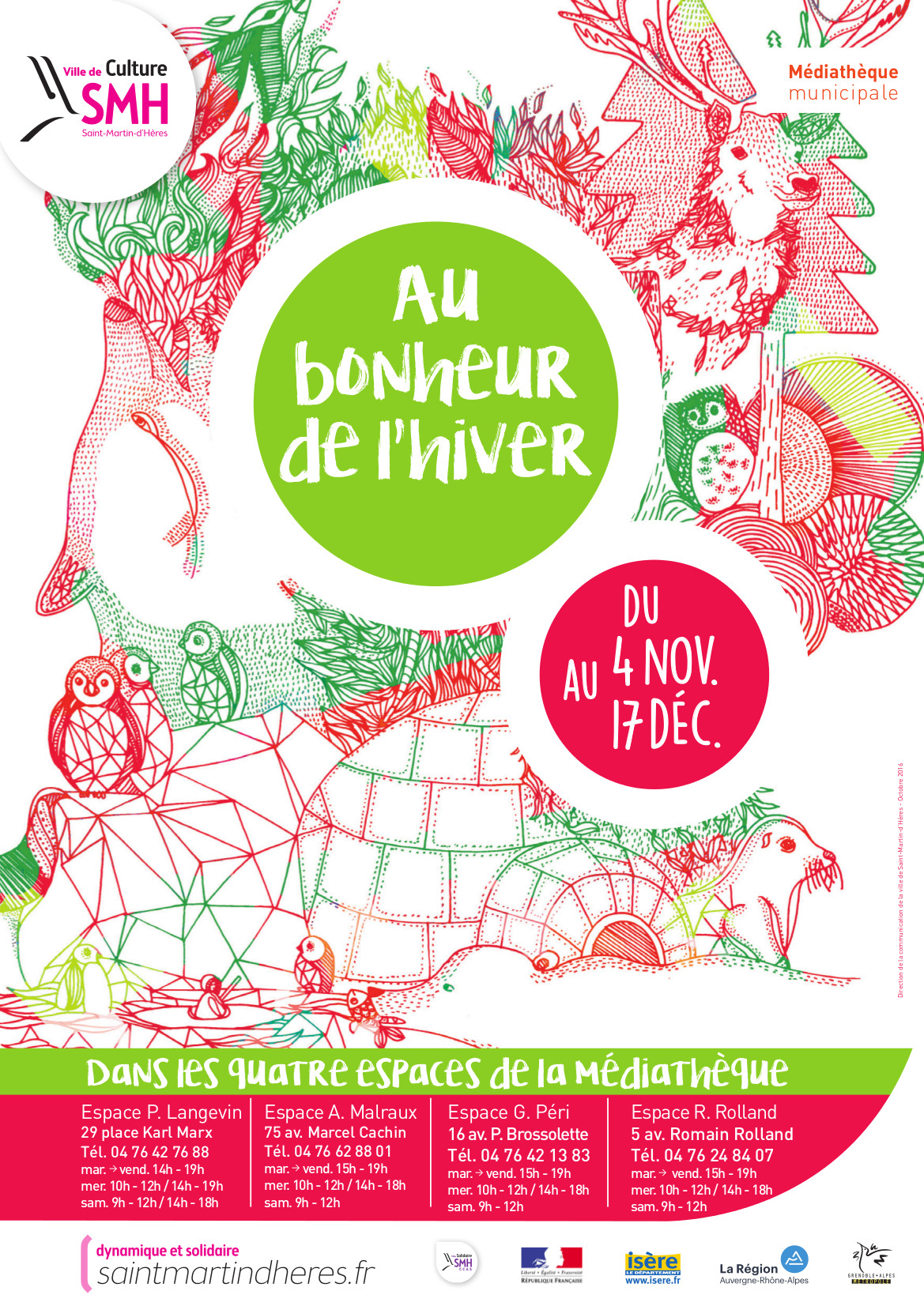 Les quatre espaces de la médiathèque, Mon Ciné et l'Espace culturel René Proby s'associent pour le rendez-vous annuel Au bonheur de… qui a pour thème cette année L’hiver ! Un événement à vivre du 4 novembre au 17 décembre. [fusion_builder_container hundred_percent="yes" overflow="visible"][fusion_builder_row][fusion_builder_column type="1_1" background_position="left top" background_color="" border_size="" border_color="" border_style="solid" spacing="yes" background_image="" background_repeat="no-repeat" padding="" margin_top="0px" margin_bottom="0px" [...]
