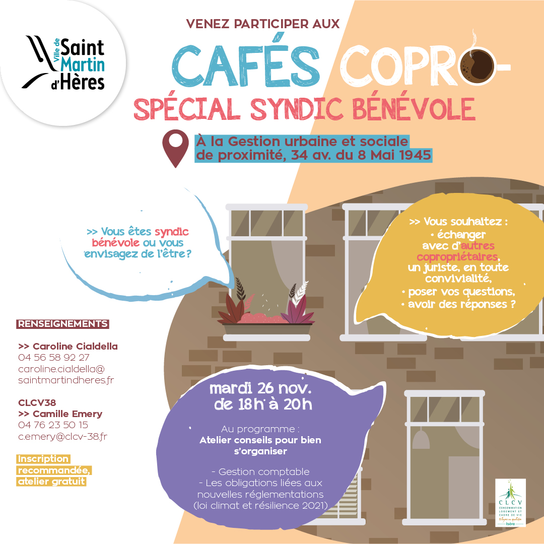 Vous êtes syndic bénévole ou envisagez de le devenir ? Vous souhaitez échanger avec d’autres copropriétaires ou bénéficier des conseils d’un juriste ? Rendez-vous le mardi 26 novembre, de 18 h à 20 h, au 34 avenue du 8 Mai 1945 !