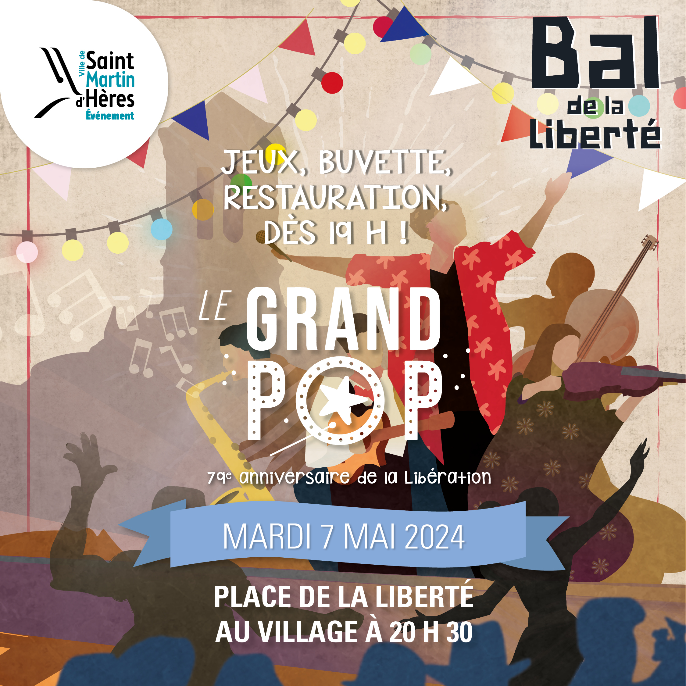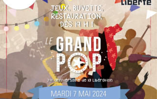 Mardi 7 mai, à partir de 19h, venez nombreux pour fêter les 79 ans de la Libération du 8 mai 1945. La place de la Liberté se transforme en bal populaire grâce au Collectif Grand POP qui vous embarque dans un voyage autour du monde. Les petits et grands pourront également profiter de jeux en bois grand format, d’une buvette ainsi que d’un stand restauration.