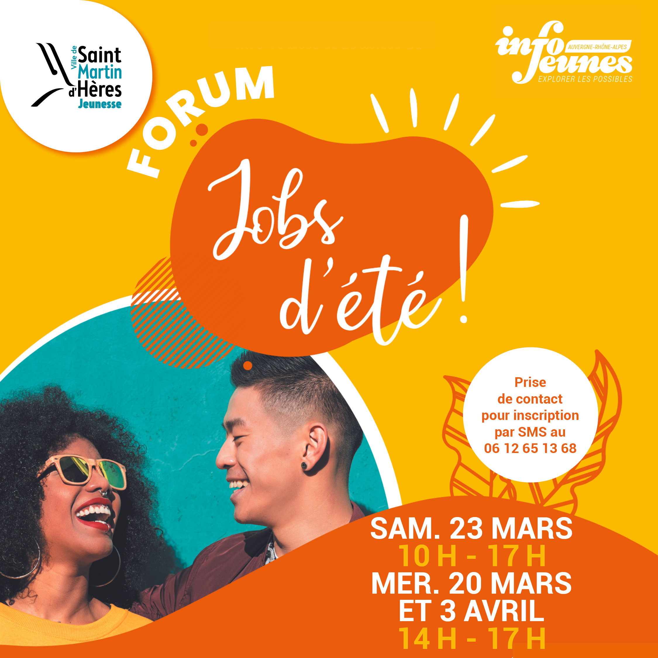 Samedi 23 mars, de 10 h à 17 h et les mercredi 20 et 3 avril de 14 h à17 h, le Pôle jeunesse accueille le Forum jobs d’été.