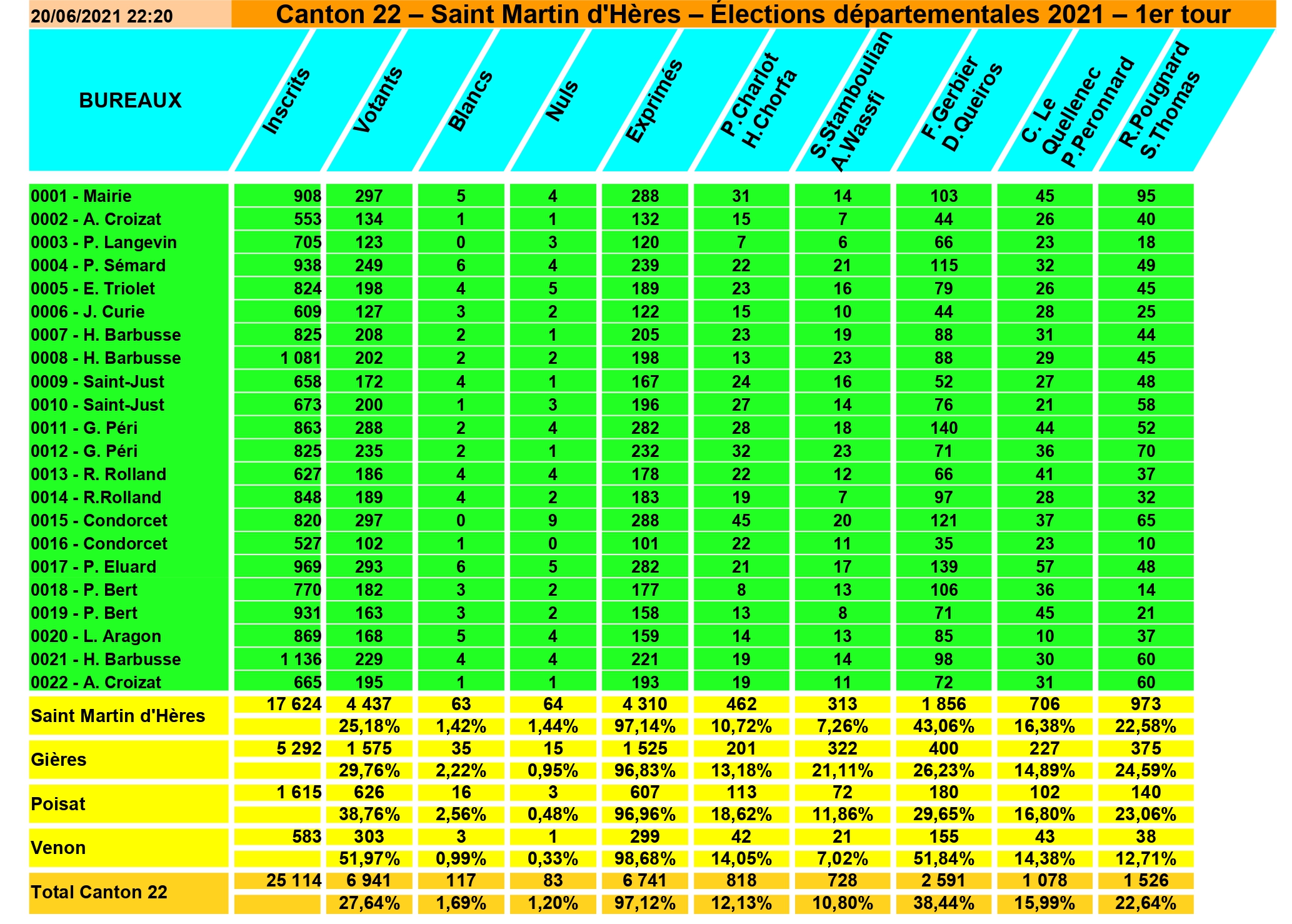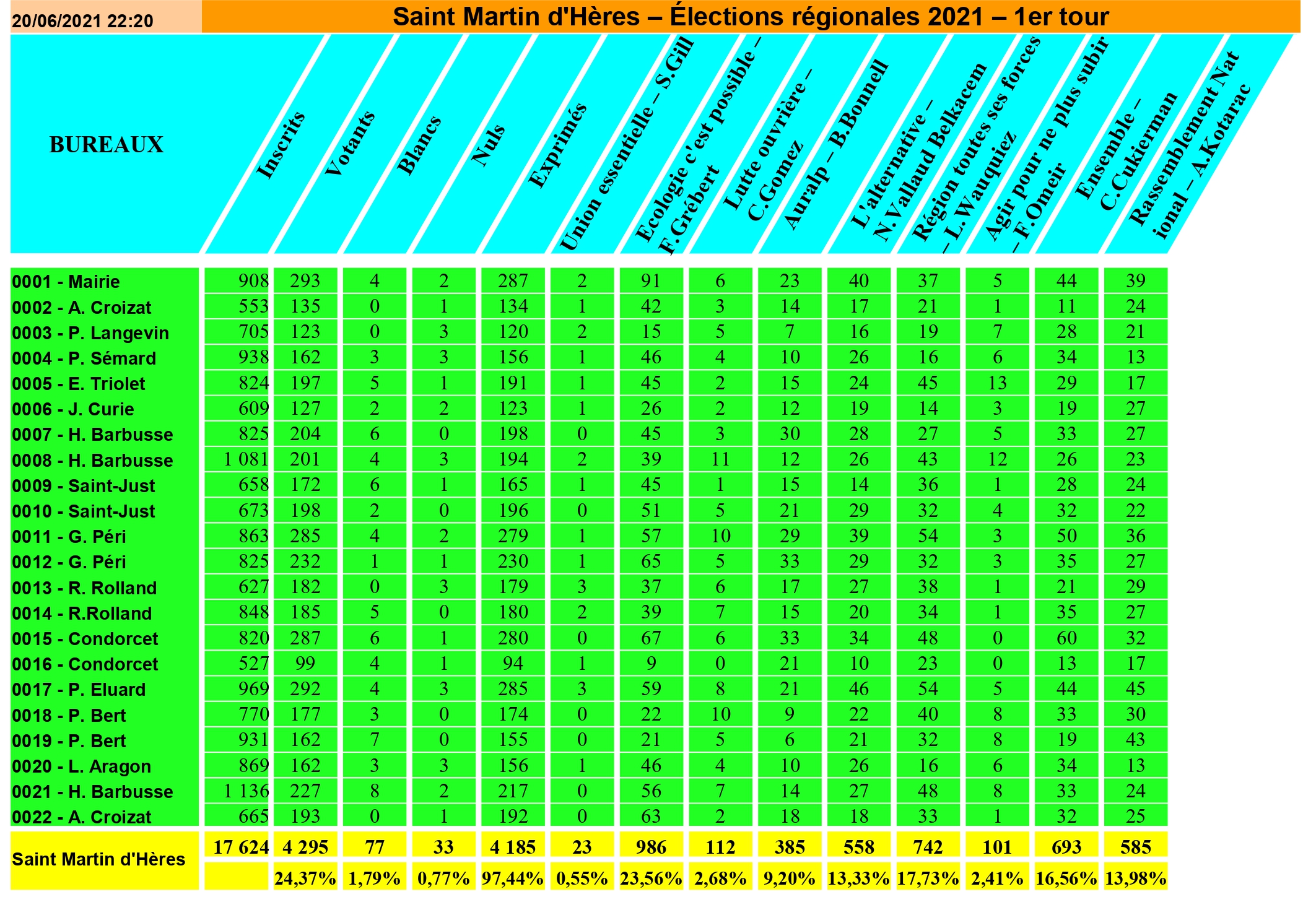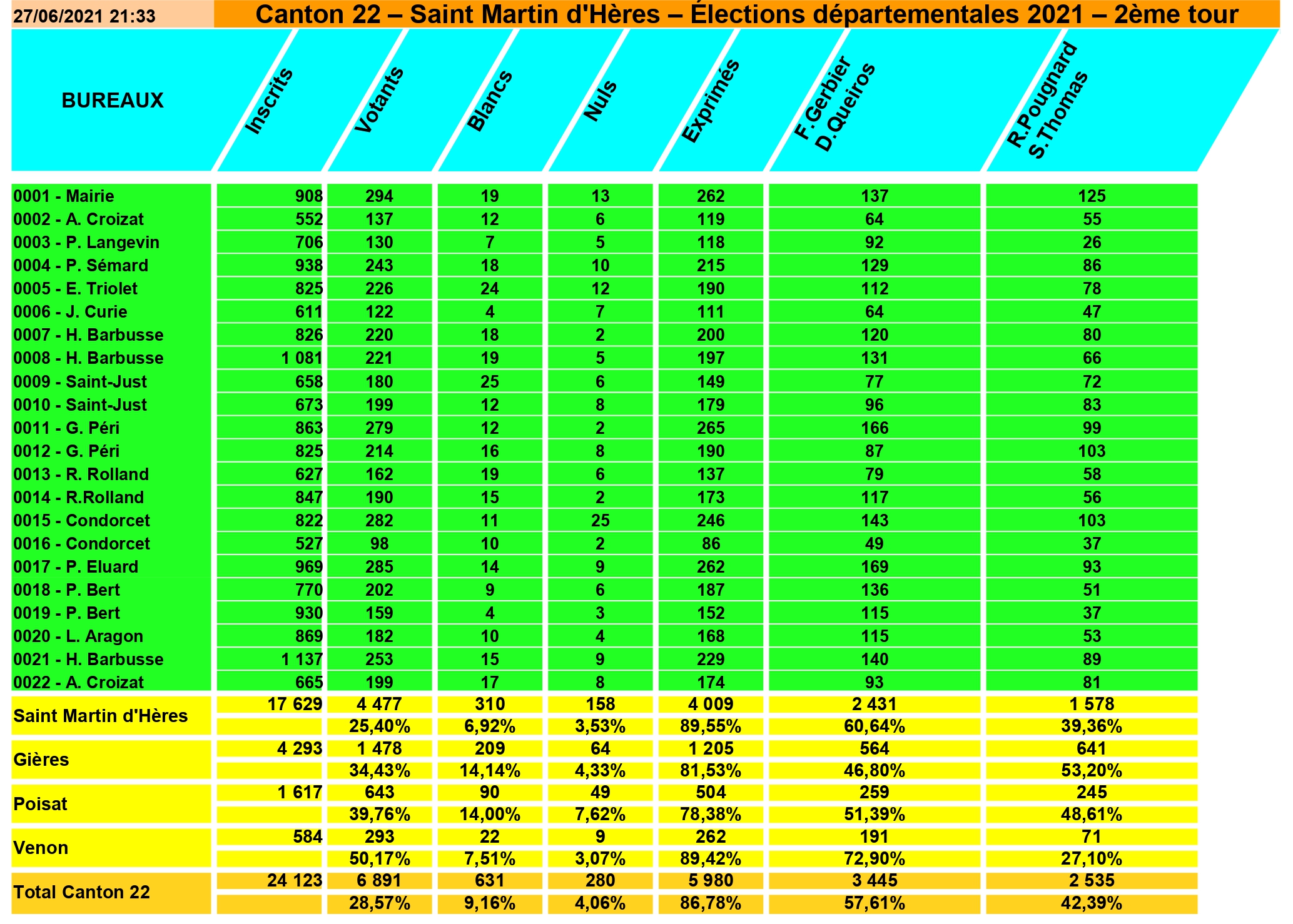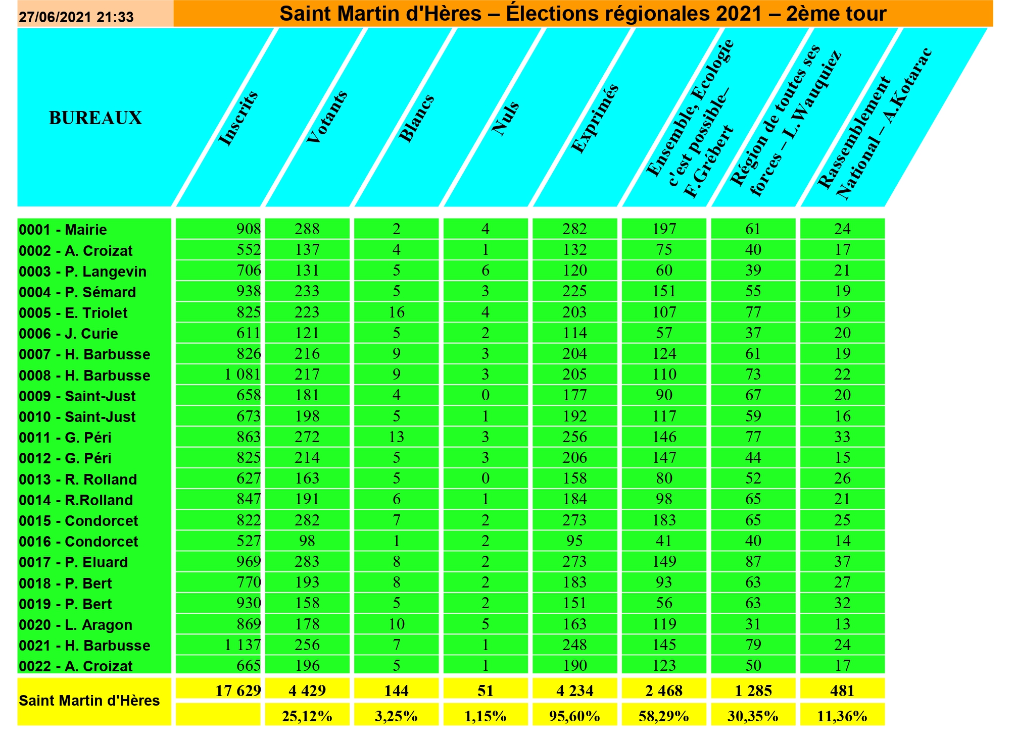 résultats du second tour de l’élection régionale du 27 juin 2021