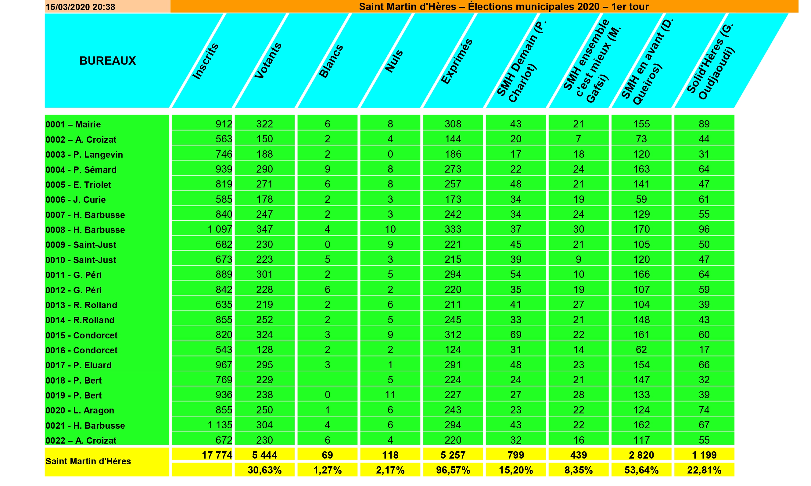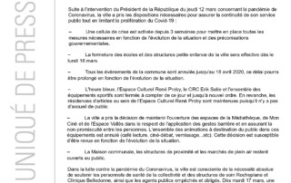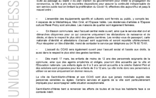Dimanche 15 mars, la liste " SMH en avant " portée par le maire sortant David Queiros a été élue. Le conseil municipal pour élire le maire et les adjoints devait se tenir samedi 21 mars. Conformément aux directives annoncées par le Premier ministre, celui-ci est reporté à une date ultérieure. C’est l’exécutif actuel qui [...]