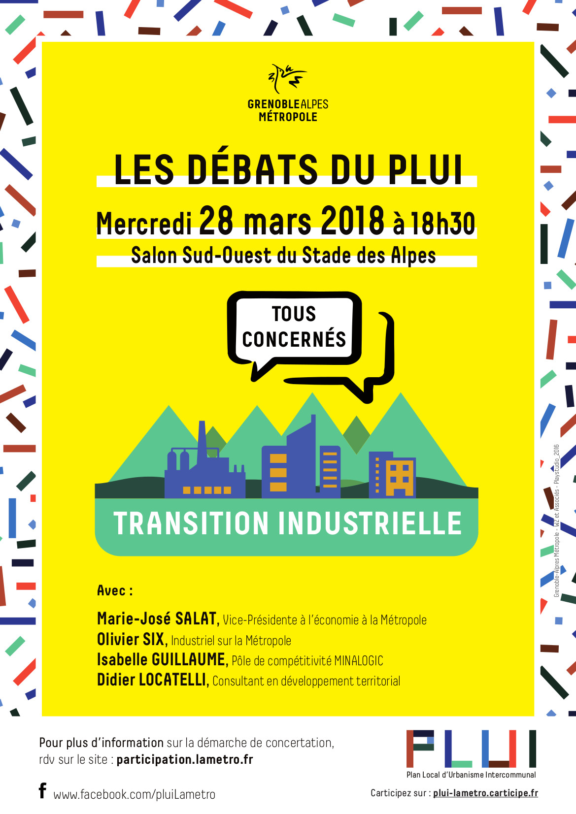 Dans le cadre de l’élaboration du Plan Local d’urbanisme Intercommunal (PLUI), la Métropole grenobloise organise un cycle de Conférence-débat : « Les débats du PLUI » Le 4ème de ces débats aura lieu le mercredi 28 mars 2018 à 18h30 dans les salons sud-ouest du Stade-des-Alpes et traitera de la thématique de : « la [...]