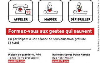 Un technicien procédera ce lundi 26 juin à l'installation de 2 nouveaux défibrillateurs dans la ville, à la maison de quartier Gabriel Péri ainsi qu'à la Halle des sports Pablo Neruda. Pour rappel, la ville possède déjà 10 défibrillateurs dans différents lieux de la ville que vous pouvez retrouver sur notre page dédiée. Des formations [...]