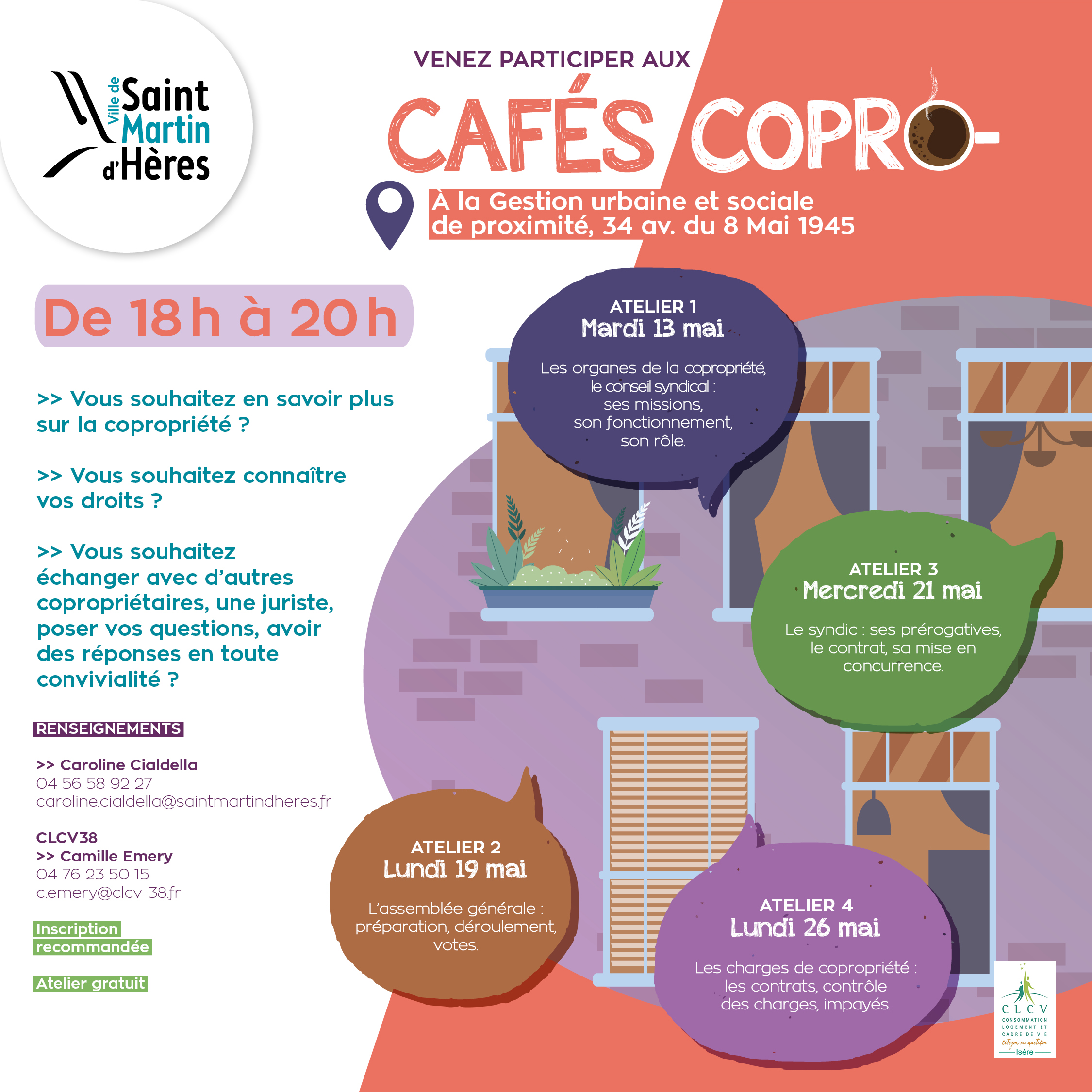 🍵Venez participer aux quatre Cafés Copro, à la Gestion urbaine et sociale de proximité (34 av. du 8 Mai 1945), de 18 h à 20 h.