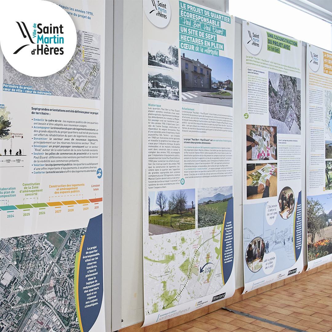 Depuis deux ans, les quartiers Paul Bert et Paul Éluard font l’objet d’une ambitieuse concertation avec les habitants en prévision d’une requalification historique : c’est le projet : “Quartiers sud, un territoire en transition”. Au travers de cinq panneaux de deux mètres, chacun peut découvrir le contexte, les diagnostics effectués avec les habitants, ainsi que les résultats issus de cette concertation, notamment en termes de respect de la biodiversité.