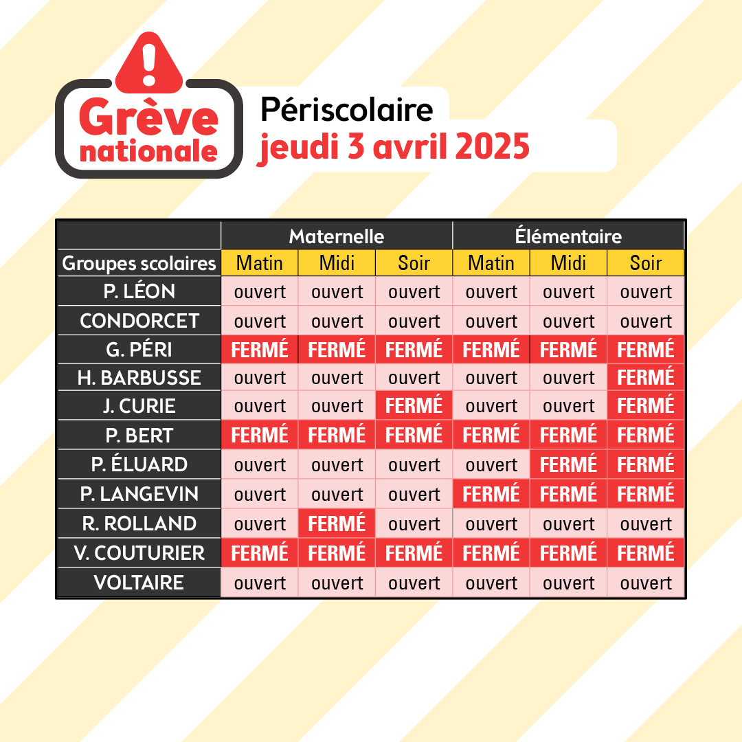 PÉRISCOLAIRE – MOUVEMENT DE GRÈVE DU JEUDI 3 AVRIL 2025