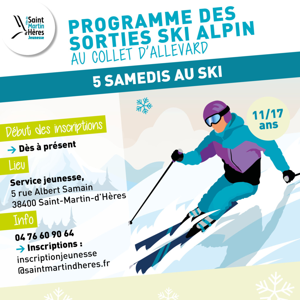 C’est le retour des sorties ski alpin au Collet d’Allevard pour les enfants et les adolescents : 5 samedis pour les 11-17ans et 8 mercredis pour les 8-14 ans sont proposés, de janvier à mars.